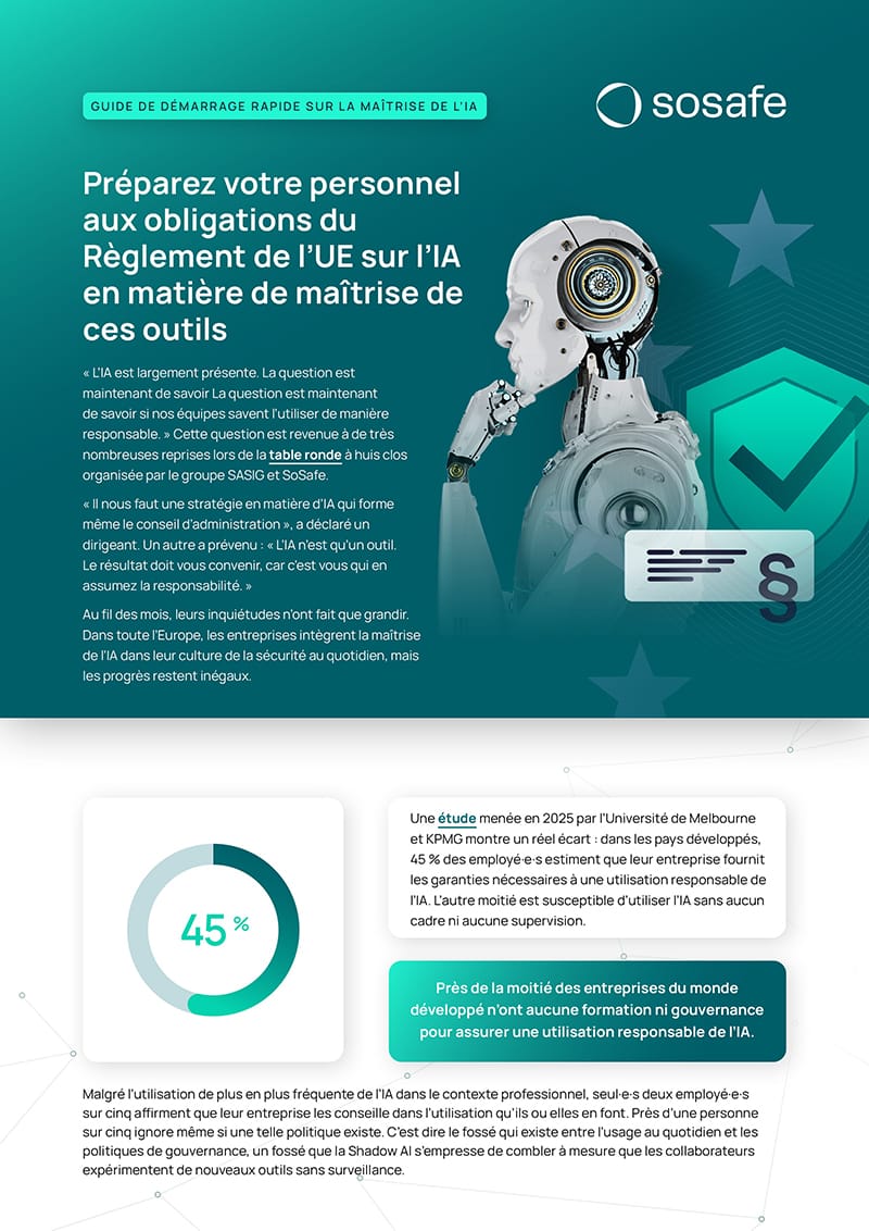 Offrez à vos collaborateurs la compréhension nécessaire pour prendre de meilleures décisions, protéger les données et anticiper les exigences réglementaires. Ce guide fournit un point de départ clair pour développer ces compétences et encourager un usage sûr de l’IA au quotidien.